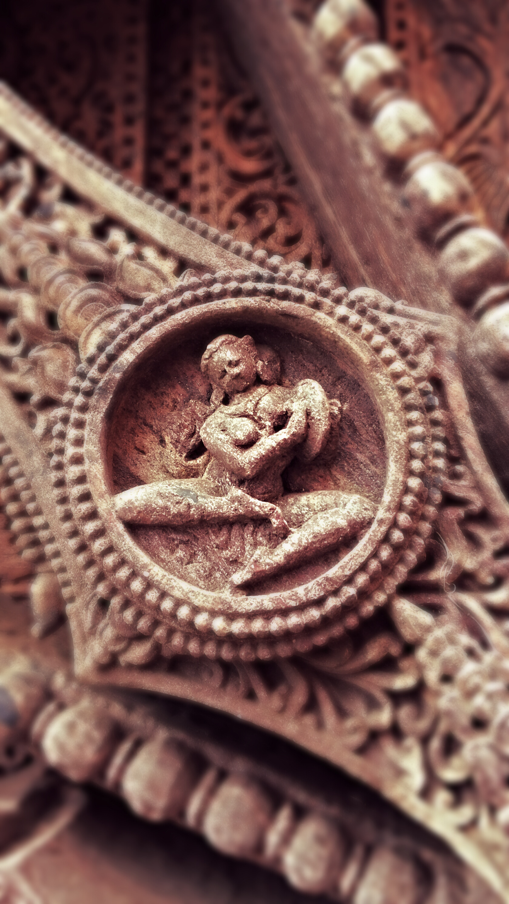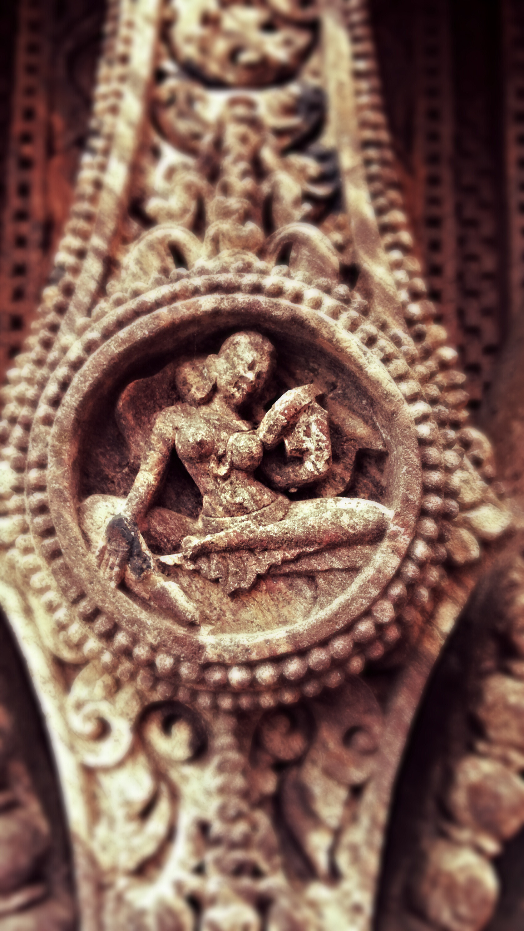 The beauty of the temple lies in its exquisitely carved wheeels of the chariot that have sculptures engraved all along its spokes and circumferance- containing amotous figures of women in different postures along with the divine Lord Krishna in the centre charmign them with the tune of his flute.