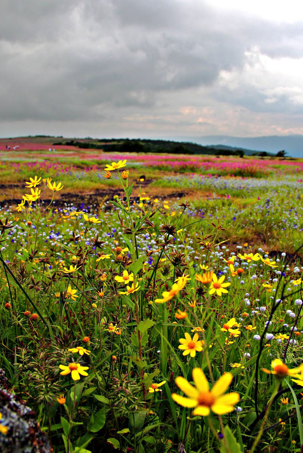The Kaas Plateau also known as the "Kaas Pathar" is a platue situated in the Western Ghat Sahyadri range, 22 kilometers from Satara city in Maharashtra state of India and is known for various types of wild flowers which bloom during August-September every year. The area of plateau is located at a height of 1200 mt and is approximately 1,000 hectare.[2] The name Kaas originates from Kaasa tree (Elaeocarpus glandulosus). It has been declared as Biodiversity World Heritage Site by The United Nations Educational Scientific and Cultural Organization (Unesco).[3][4] The place has more than 850 different species of flowers and other plants including Orchids, Karvy and carnivorous plants such as Drosera Indica. This falls under the Sahyadri Sub Cluster of Western Ghats which is now a UNESCO World Heritage Site. (Wikipedia)