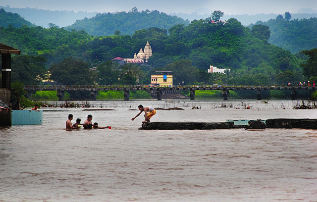 If you crave for a more natural setting for your hot spring experience, you may proceed a couple of yards back on a muddy lane towards the Tansa river where there are four tiled-hot spring structures of various sizes. There are also hot spring tanks right in the middle of the Tansa River, which is accessible by foot only during low tides! The adventurous spirits can even swim through the river and reach this vantage point to have a beautiful view of the Vajreshwari Temple in the backdrop of the hills. Small makeshift tents around these springs offer changing rooms for a nominal sum of money, especially for women. Even though the crowd here may look a little rowdy compared to the ones at the Shiv Mandir, but soaking your feet in the hot water while overlooking the river is really worth an experience. Chances of any infection from the common bath are negligible since there is always running water in these springs.