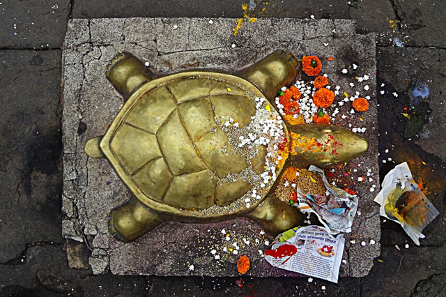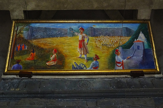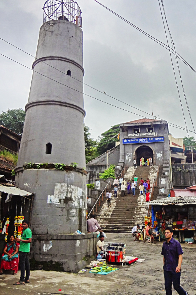 Nestled in the foothills of Mandagiri hillock, the intricately stone-carved Vajreshwari temple is located at the very entrance of the town and welcomes one with the imposing Dipamala (tower of lights) and several flower shops around it. At the first glance, the temple looks exactly like a fort with fifty-two steps leading to the main entrance. On ascend one can spot the golden tortoise (worshiped by the people as Kurma, the tortoise incarnation of Vishnu) carved on one of the steps. From atop one can see the breathtaking view of the entire countryside. The Nagarkhana or drum house at the very entrance of the temple is built exactly similar to Bassein fort entrance. The similarity is explained through an old painting hanging on the wall inside the temple itself. In the year 1739, Chimaji Appa, the younger brother and military commander of Peshwa Baji Rao I, had set camp around the Vadvali and Akloli region on his way to capture the invincible Bassein Fort of Vasai held by Portuguese for over three years. During this period he prayed to goddess Vajreshwari to help him conquer the fort with a promise to build a temple in her honour if he won the battle. It is believed that the goddess appeared in his dream and gave him advice on how to conquer the fort as a result of which Chimaji Appa was actually able to defeat the Portuguese. Hence, keeping his promise he ordered his governor Shankar Kasav Phadke to build Goddess Vajreshwari a temple in the replica of the Bassein fort. Since then people believe that the famed goddess fulfills one’s wishes if they genuinely pray to her.