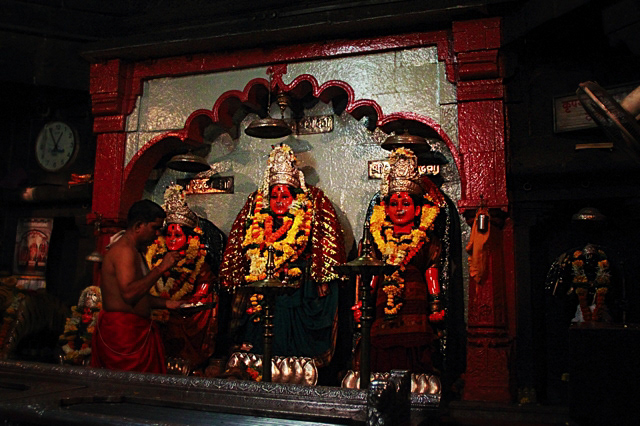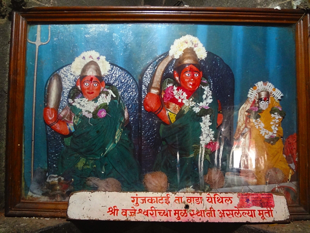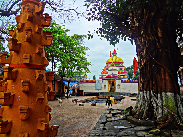 Proceeding inside the dimply-lit main sanctum, one can behold the saffron idols of Goddess Vajreshwari in the center with Kalki Devi (the local village goddess) and Renuka Devi (Lord Parshurama's mother) on her either side clad in colourful saris. The divine sight is bound to make you mesmerized! A walk around the temple premise would reveal other smaller shrines of Kapileshwar Mahadeva (Shiva), Datta, Hanuman and other saints of Giri Gosavi sect along with a huge stage where locals celebrate Navratri and Ram Navami with great pomp and show. The Vajreshwari temple is a must visit for travellers as the sweet smells of incense, flower offerings and the serene hill in the backdrop create an ambience of tranquility and pure bliss that is definitely not to be missed.
