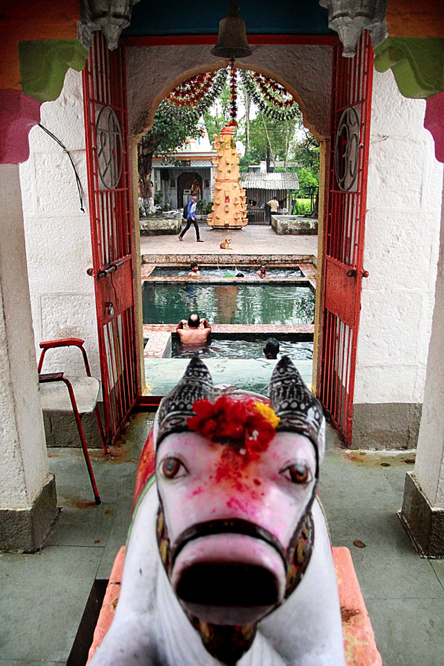 Little further down the road is the Bhagwan Nityanand Mandir, a granite and marble structure temple where mainly devotes visit to meditate. The temple complex also houses the museum of Bhagwan Nityanand and his disciple Swami Muktanand where one gets to know the story of the life of these great souls who walked on earth. Inside the premises of the temple are the samadhis of Bhagwan Nityanand and Bhimeshwar Ganesh. The atmosphere here is serene and the experience is divine. Also inside this temple complex is a small shrine dedicated to Lord Shiva where one can offer puja. Just outside the temple are three hot springs that are comparatively cleaner and less crowded than the ones in Akloli Kund. Maintained by the Nityanand Temple authorities, these shot springs of varying temperature are surrounded by proper changing rooms where women and men can conveniently change their clothes before and after their hot bath.
